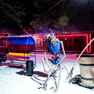 Помощники Деда Мороза украшают вотчину праздничными огоньками, украшают новогоднюю Елку. На территории вотчины помощницы Деда Мороза предлагают угощения для путешественников, различные напитки, закуски и горячее (за дополнительную плату).