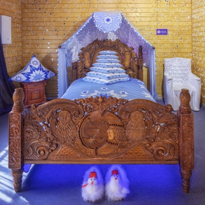 Вы сможете получить настоящее удовольствие от прогулки по бору и тропе сказок. В своей сказочной резиденции ждет встречи с вами сам белобородый кудесник – Дед Мороз и его помощники. В доме Деда Мороза гости смогут набраться мудрости, загадать заветное желание, посмотреть удивительную коллекцию подарков, посетить волшебную обсерваторию и библиотеку, увидеть деревянную кровать зимнего кудесника и заглянуть в волшебное зеркало.